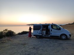The camperized Renault Trafic is a versatile and compact van, adapted to offer a comfortable and functional camping experience. Externally, it maintains the robust and modern design of the Renault Trafic, with clean and aerodynamic lines, while additional accessories such as awnings increase its practicality. Inside, the vehicle has been transformed into a compact but well-organized living space. Behind the front seats, the main compartment houses a kitchen area with a small gas stove, a sink, and a refrigerator, all...