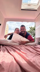 The cabin communicates with the camperized part, the bed is fixed, the shower has a screen, there is hot water and heating, table for 2 (both inside and outside), kitchen with sink and 2 cookers, ample storage...