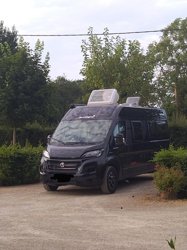 Notre fourgon est idéal pour 2 personnes, il se gare relativement facilement et sa couleur noire lui permet de se glisser incognito sans être associé aux campings-cars qu'on voit partout.