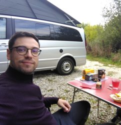 Marco, est un van Mercedes équipé par Westfalia. Il se conduit comme un 'gros' monospace, avec toutes les aides à la conduite pour le stationner facilement.